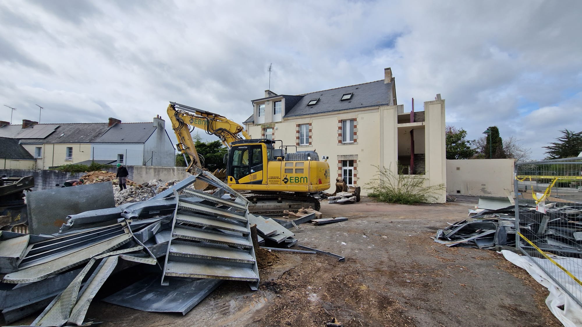 Le chantier de l’ancienne cour d’école à Sainte Anne avance. La déconstruction de bâtiments non utilisables permet l’ouverture de la cour sur l’espace public avec bientôt l’arrivée de la charpente de la halle publique !