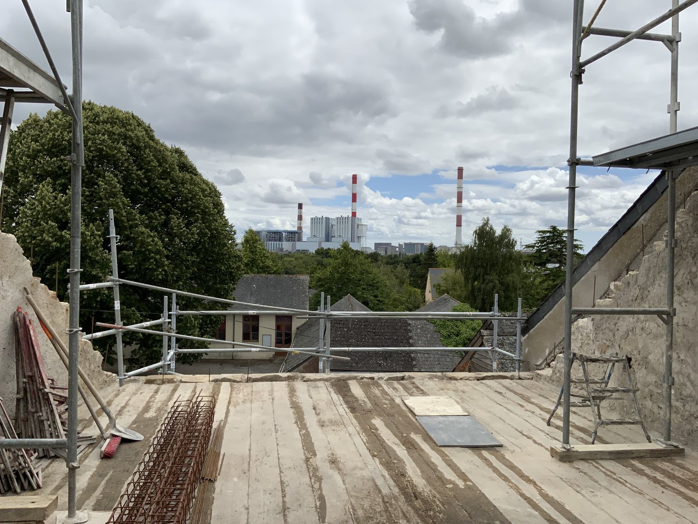 La commune de Cordemais souhaite réhabiliter au fur et à mesure les bâtiments autour de la place de l’Eglise. Ici est réalisée la réhabilitation du premier bâtiment avec en RDC le réaménagement du laboratoire de préparation du PROXI pré-existant et la création d’un espace réservé aux personnels à l’étage. Dans un second temps, le logement situé à l’étage du commerce est réaménagé pour offrir plus de confort aux futurs habitants. De la même manière, le dernier étage du bâtiment est aménagé en T2 avec la création d’une grande ouverture au Sud pour offrir de la lumière dans le futur salon.