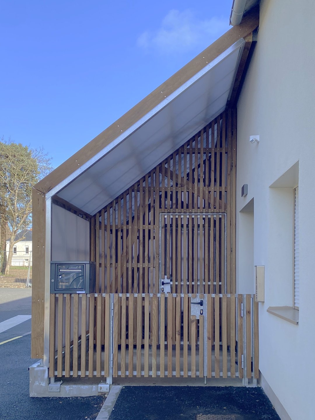 La création d’une MAM pour Saint-Joachim se réalise dans un bâtiment existant réhabilité auquel une extension en structure bois est rajoutée. Le projet intègre totalement le bâtiment existant pour réaliser un ensemble unique pour ce nouvel équipement de la commune. Le projet est pensé tourné vers l’intérieur de la parcelle, avec des vues et accès sur le jardin. Ainsi, les espaces dédiés aux enfants sont protégés de la rue passante.