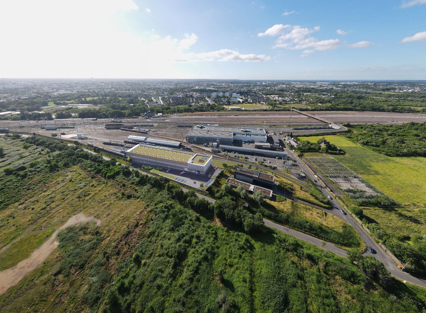 L’architecture du technicentre se veut significative par le choix d’un bâtiment simple mais possédant une identité forte. L’objectif est de réaliser un Atelier de Maintenance où priment fonctionnalité et dynamique.