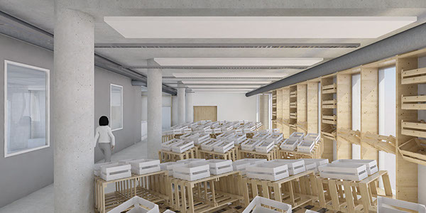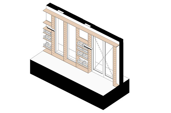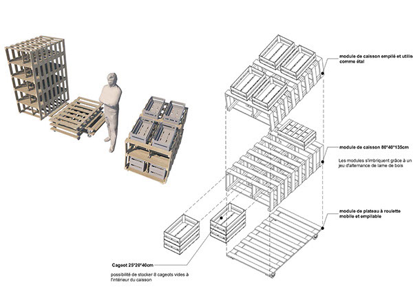Le projet du Quai des Marchandises est un projet d’aménagement d’un rez-de-chaussée commercial au sein de l’opération 5 Ponts, dessinée par l'agence Tetrarc, au coeur de l'Ile de Nantes. Il a vocation à accueillir un marché couvert, ou supermarché coopératif, dans lequel seront vendus des produits issus d’une ferme coopérative portée par la même association. Dans la surface commerciale se trouve un laboratoire alimentaire destiné à transformer les invendus de la veille en coulis, bocaux et autres préparations afin de les remettre dans le circuit de la vente et ne pas générer de gaspillage. L’aménagement comprend également la conception du mobilier.
